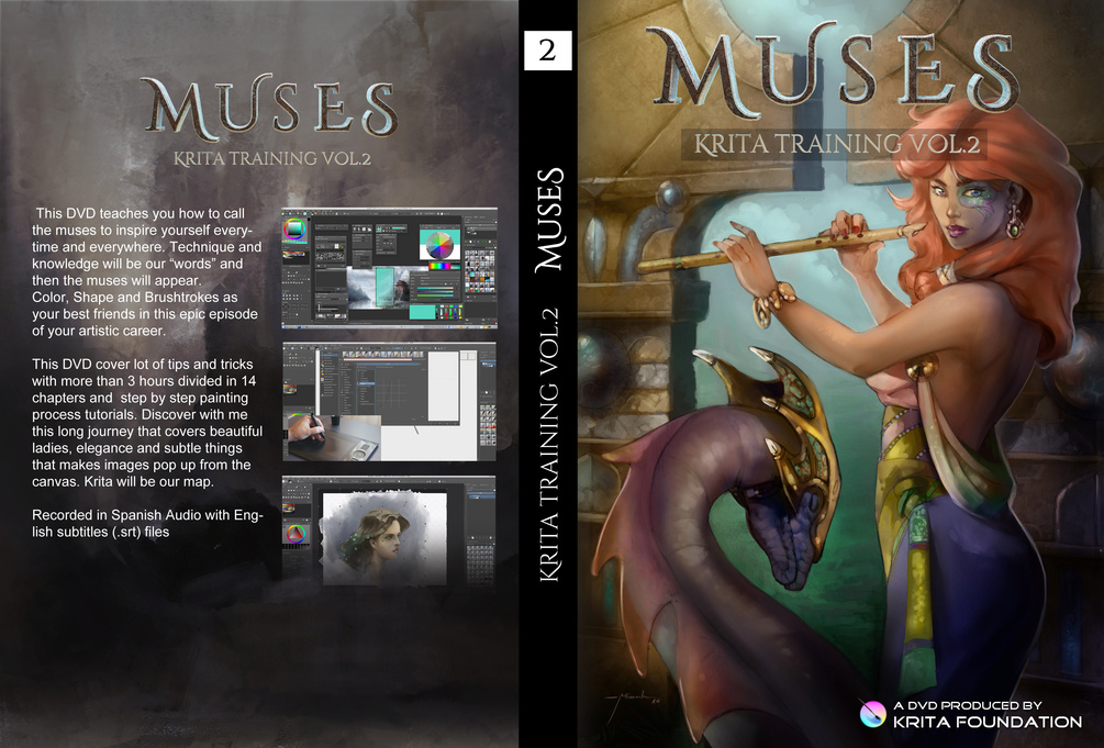 Five hours of detail-packed instruction, covering the whole process from setting up Krita to printing a finished work of art. The DVD isn’t just about using Krita’s interface. It’s a complete creative course. The DVD is Spanish spoken with English and Spanish subtitles.